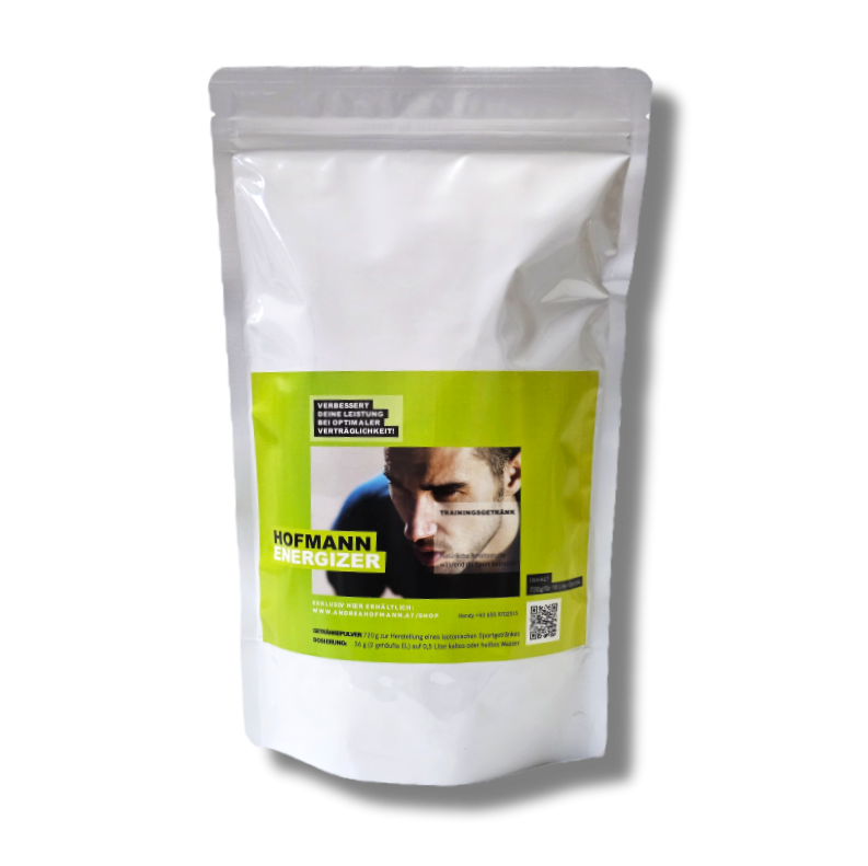 HOFMANN energizer liefert dem Körper optimale Energie während körperlicher Belastung. Ideal als Trainingsgetränk ist es extrem verträglich, da die Inhaltsstoffe natürlich sind und die Bestandteile konsequent auf jene reduziert wurden, die nach wissenschaftlichen Erkenntnissen die Leistung während der Belastung fördern. Auf einen Zusatz von Vitaminen, Mineralstoffen und Spurenelemente wurde bewusst verzichtet, da diese die Aufnahme und Verträglichkeit während des Sportes reduzieren. Der Körper erhält genau das, was er tatsächlich benötigt, was ihn stärker und leistungsfähiger macht.
